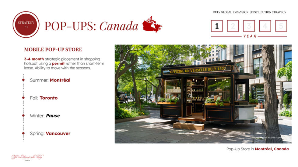 Developed a 5-year distribution strategy for Officine de Buly to expand into the North American market. Detailed execution logistics and merchandising mix for pop-ups, department stores, directly operated stores, hotel placement and collaborations.